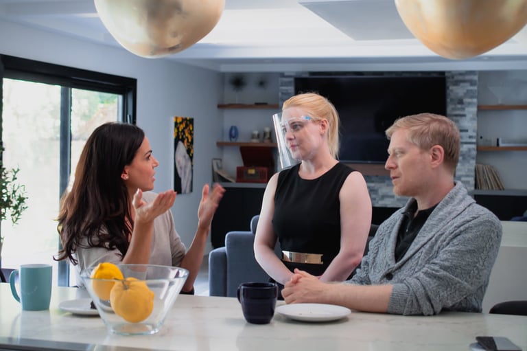 Lana Parrilla, Vivian Kerr, and Anthony Rapp on the set of SCRAP.